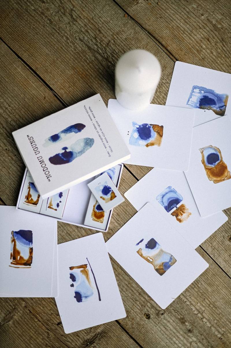 Nodomu uguns kāršu kastīte ir mans kopdarbs ar mīļu un tuvu sirdsdraugu Vendiju Kairi. Tā tapusi laikā, kad radošums plūda pāri pārēm un bija manas meitiņas gaidību laiks. Šī būs vērtīga dāvana gan sev un savai telpai, gan draugiem un radiem. Katrā no tām ir 8 sērkociņkastītes un skaidrojošās kārtis. Uz tām uzprintētas manas oriģinālgleznas. Ļaujoties sajūtām, izvelc to kastīti, kura "sirdi uzrunā" visvairāk un uz skaidrojošās kārts, atrodi tautasdziesmu un vēstījumu no savas dzimtas. Noskaitot attiecīgo tautasdziesmu, aizdedzini sveci, kamīnu, vai ugunskuru, lai Nodoms iet plašumā. Ar laiku kārtis var izmantot kā printus, ierāmējot un iekļaujot interjera dizainā, katrā telpā sagalbājot savu Nodomu.
